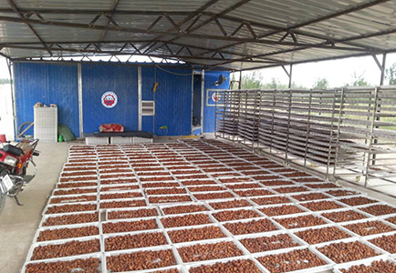 В сушилке для фруктов и овощей серии 5Н осуществляется термическая проводимость и влаго-теплообмен посредством принудительной вентиляции и циркуляции горячего воздуха. По сравнению с традиционными сушилками китайского производства наша сушилка имеет преимущества как большая плотность загрузки, экономия рабочих сил, экономия топлива, стабильность влажности и температуры, высокая степень автоматизации, несложная эксплуатация, сокращение времени сушения и т.д. В процессе сушения продукция равномерно нагреется, сушенный китайский финик имеет светлую окраску, на кожуре которого мало морщин, большая эластичность, маленькая разница по цвету дает возможность повышения сорта продукции, средней цены и увеличения экономической эффективности.